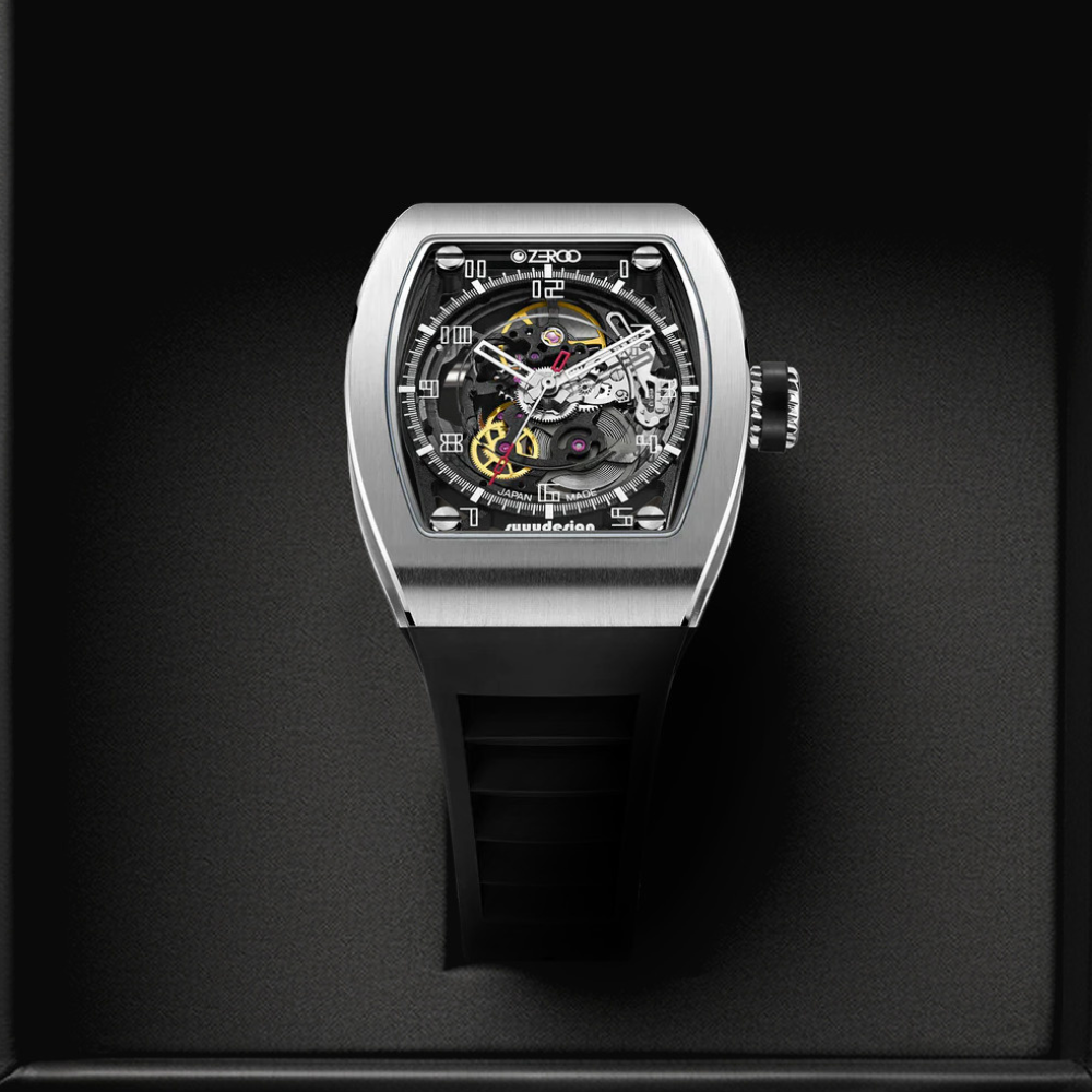 Discover the M2 – The Subaru, the first automatic movement in the ZEROO M series. Powered by a Swiss automatic movement, this timepiece showcases a sophisticated skeletonized design, offering an unobstructed view of its intricate craftsmanship from both the front and the back.