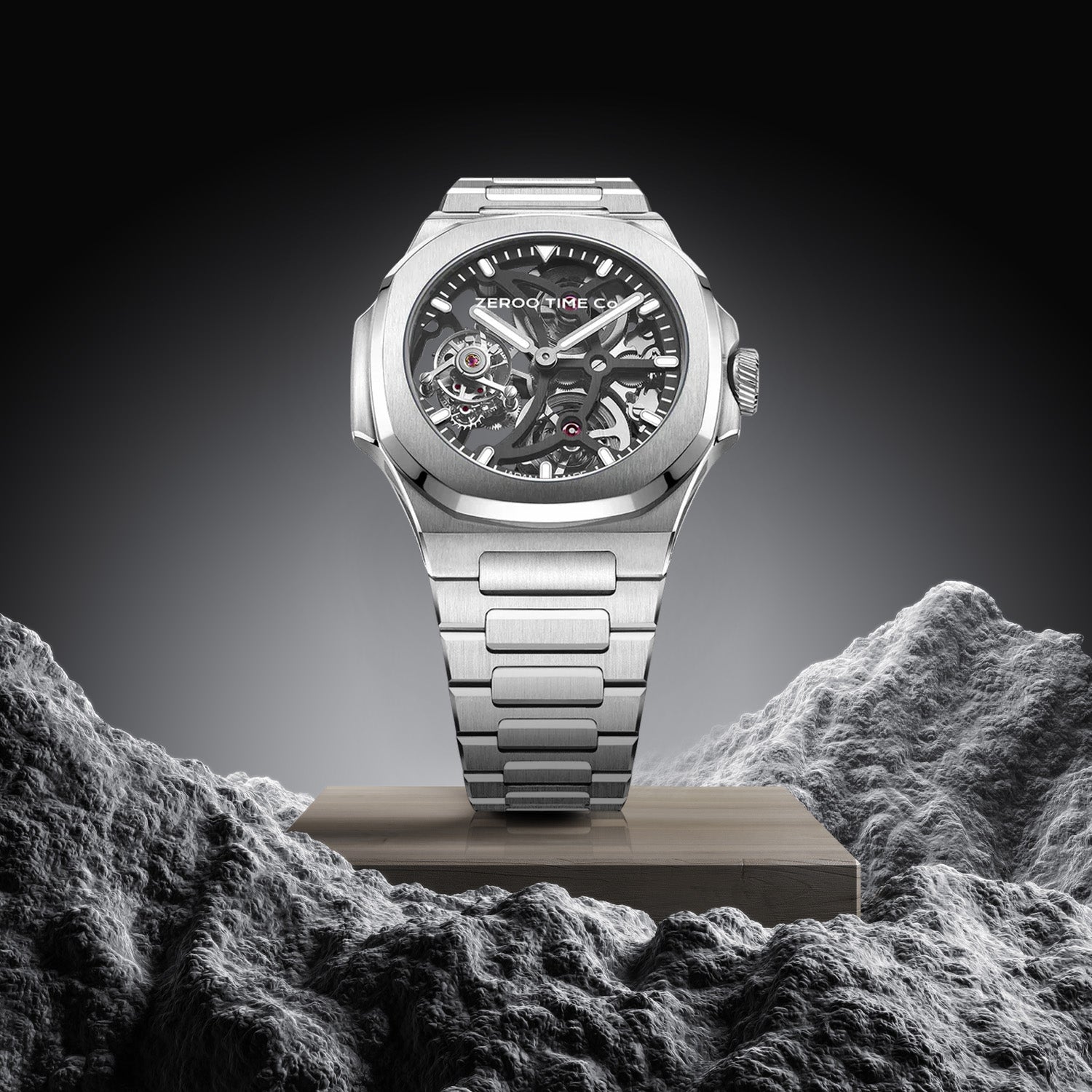 The stainless steel bracelet is crafted for light reflection, enhancing the watch’s bold character. A streamlined dial design provides an unobstructed view of the flying tourbillon at 9 o’clock, appearing to float within the case for a captivating display.
