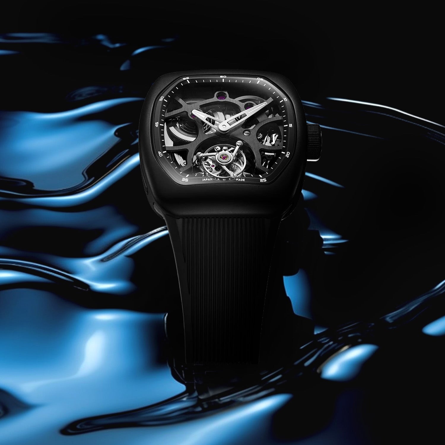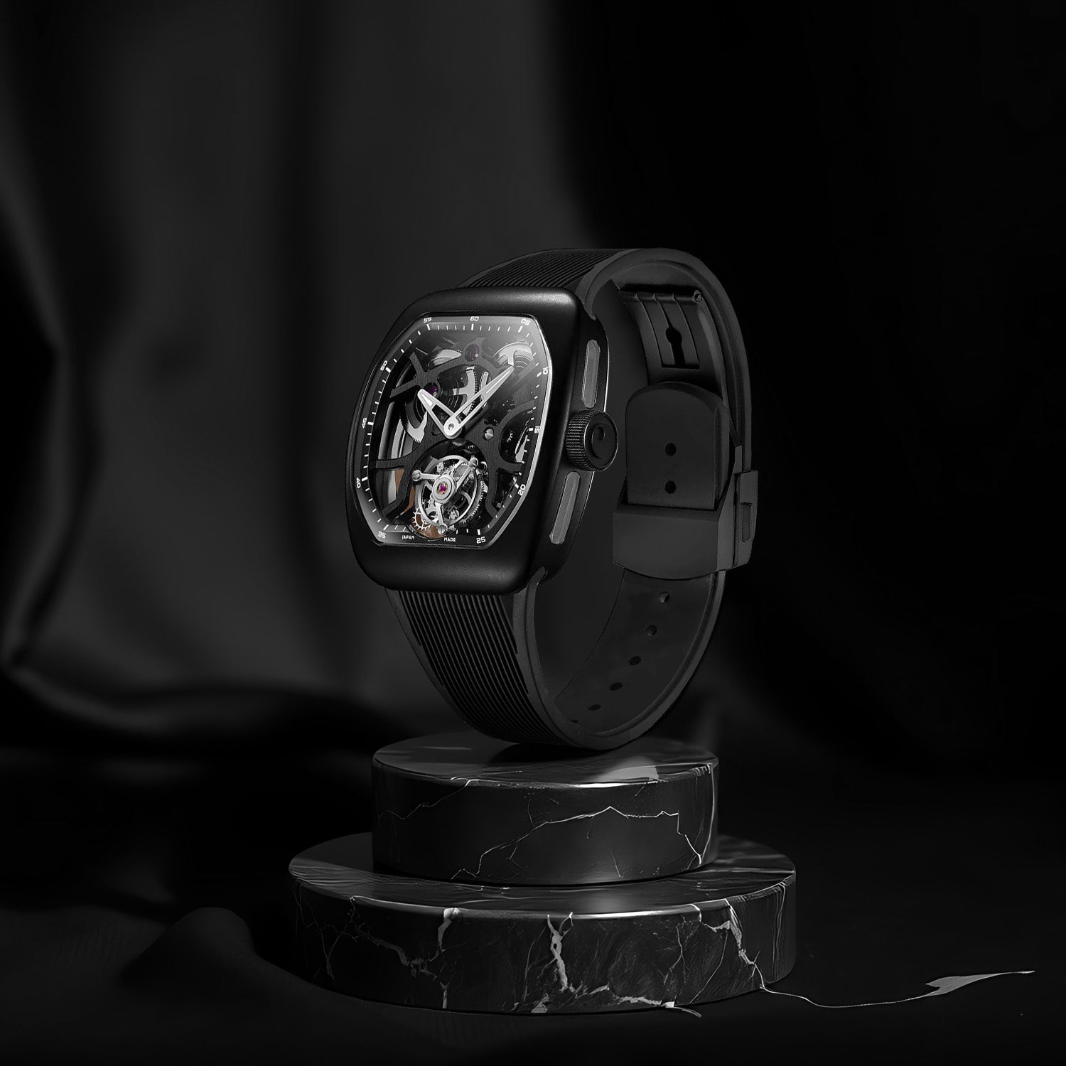 Meet the T9-01, a masterpiece of watchmaking. This model combines an advanced automatic tourbillon movement with a refined free-sprung escapement, ensuring unparalleled precision and reliability. The elegantly curved tonneau-shaped case highlights the timeless beauty of the design, while the minimalist aesthetic reinterprets traditional elements in a contemporary style.