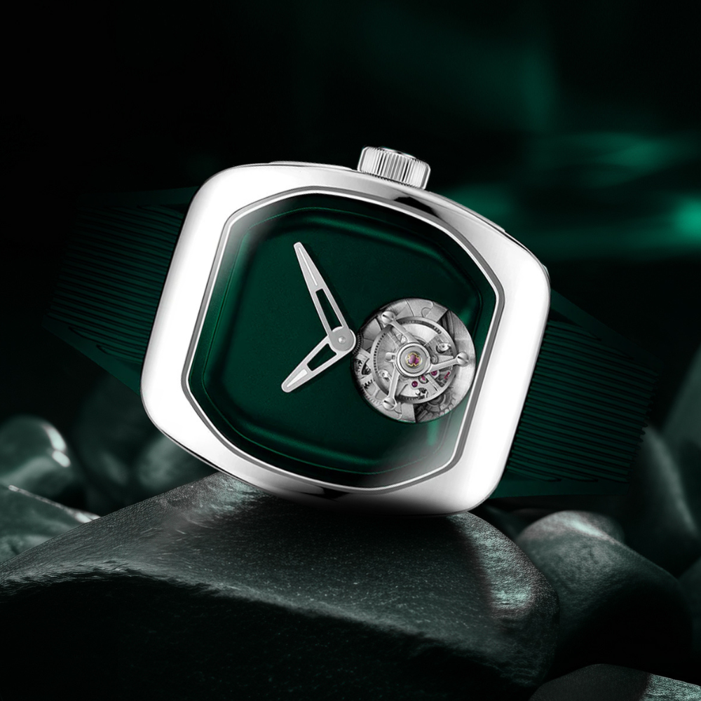 Meet the T9, a masterpiece of watchmaking. This model combines an advanced automatic tourbillon movement with a refined free-sprung escapement, ensuring unparalleled precision and reliability. The elegantly curved tonneau-shaped case highlights the timeless beauty of the design, while the minimalist aesthetic reinterprets traditional elements in a contemporary style.